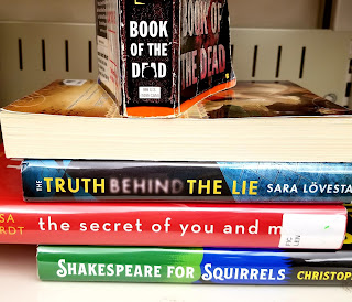 *** The final Senryū I composed at our public library as a "Spine Poem" using the titles of four books found on their bindings spines. I have not read any of them although I am thinking about checking the bottom book out to read.